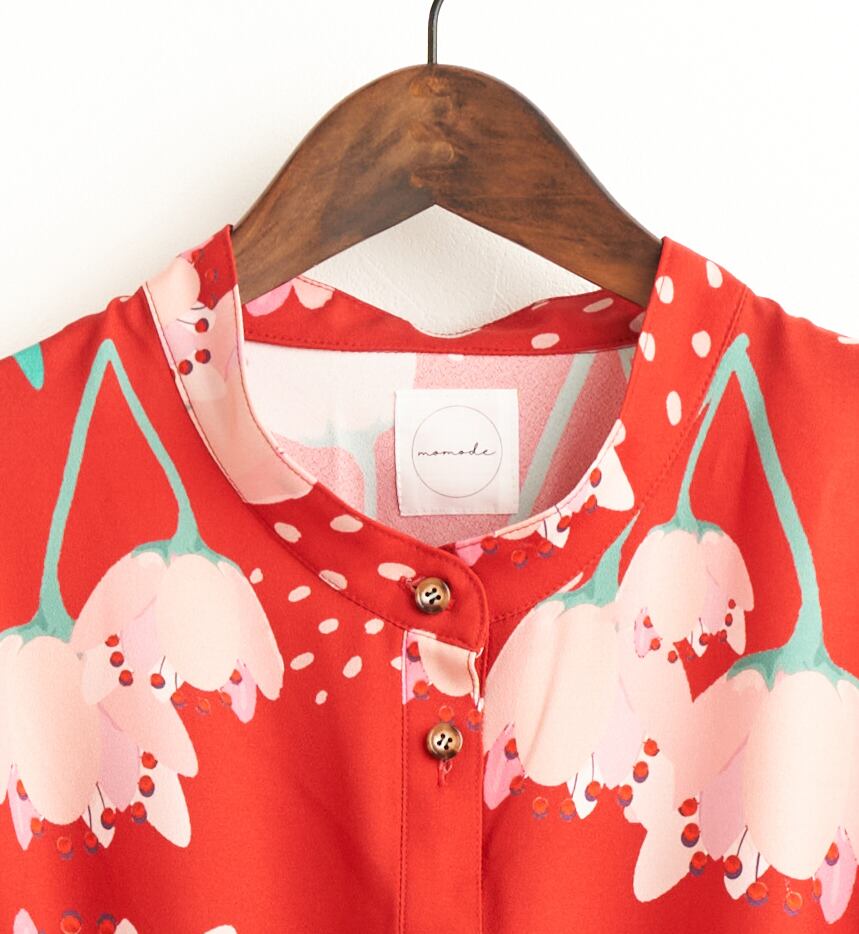 赤色が品よく映える【soyokaze】のワンピースは