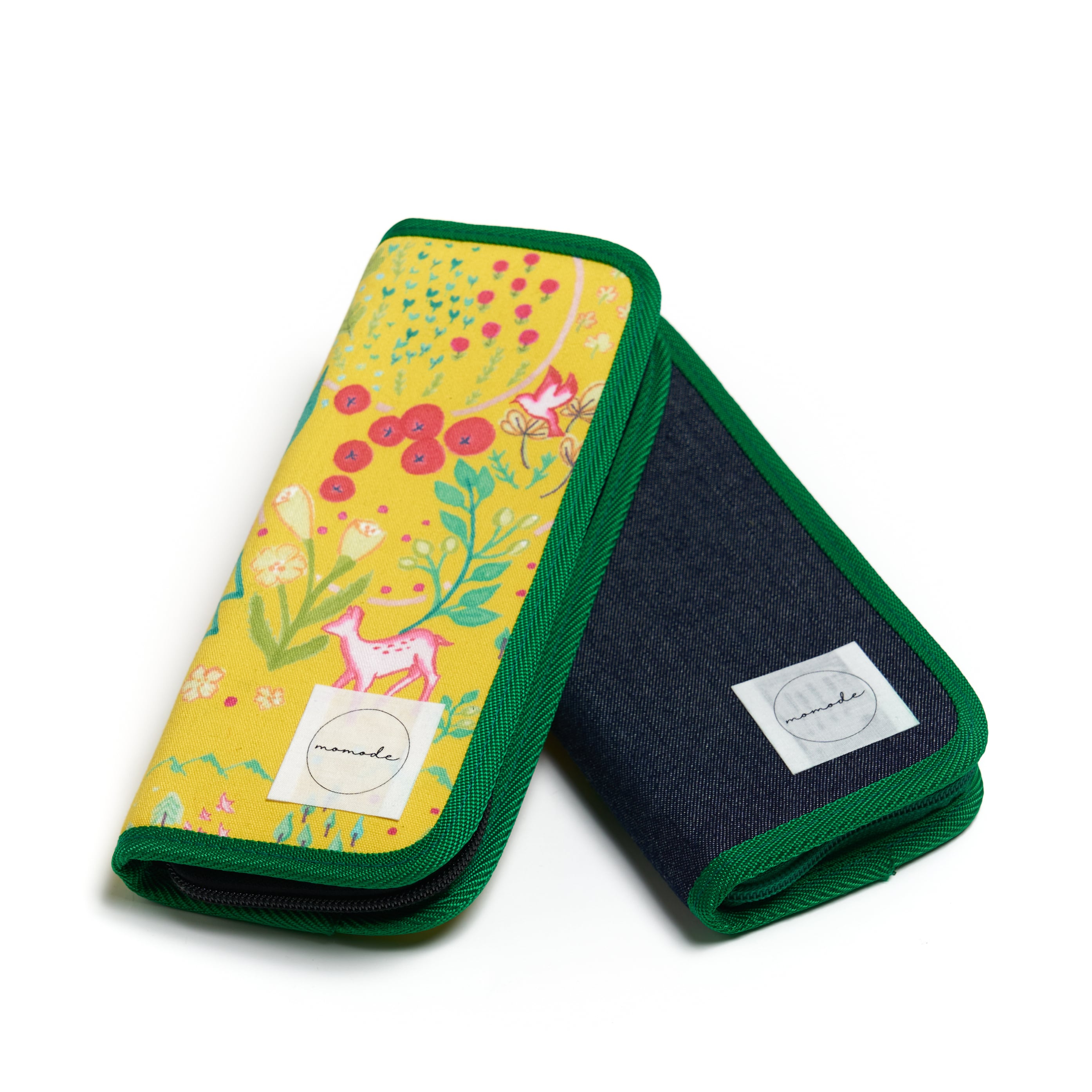 ポーチの素材は綿コットン生地なのですが、中に芯素材を挟み込んでいるので洗濯はしないでください。